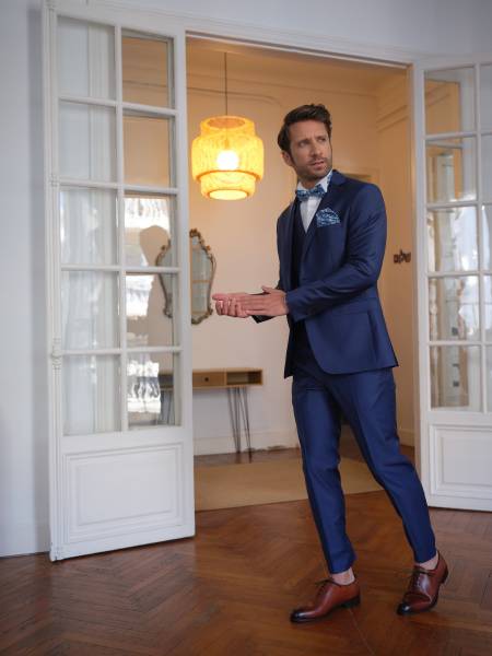 Costume 3 pièces bleu royal fil à fil 2 boutons
