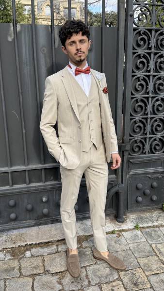 Apportez une touche d’élégance naturelle à vos événements avec ce costume homme en mélange de lin, parfait pour les saisons chaudes. Sa teinte beige claire offre un style à la fois chic, moderne et intemporel, idéal pour un mariage, une cérémonie ou une tenue estivale habillée.