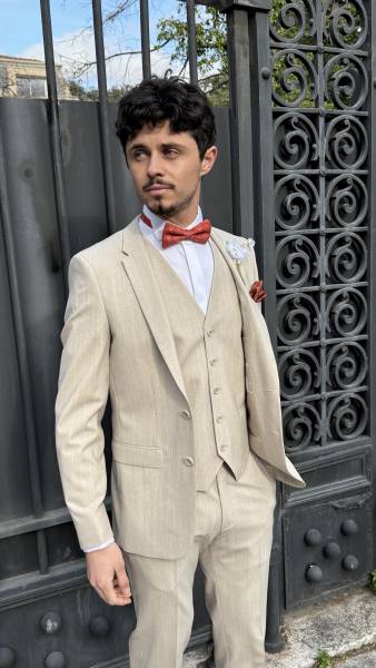 Confectionné dans un mélange de lin respirant, ce costume allie confort, légèreté et tenue impeccable tout au long de la journée. La coupe ajustée met en valeur la silhouette sans compromettre l’aisance, tandis que le gilet assorti apporte une finition raffinée. Porté avec un nœud papillon ou une cravate, il s’adapte aussi bien à un style formel qu’à une allure plus décontractée.