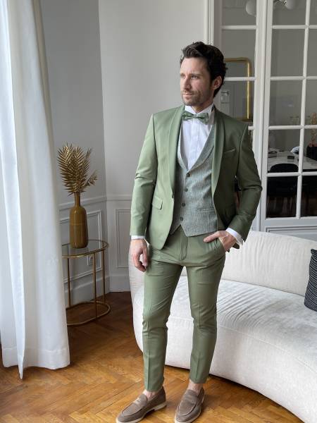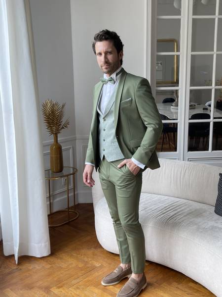 Costume 3 pièces vert olive sur Marseille pour votre mariage.