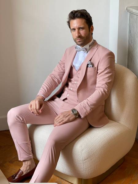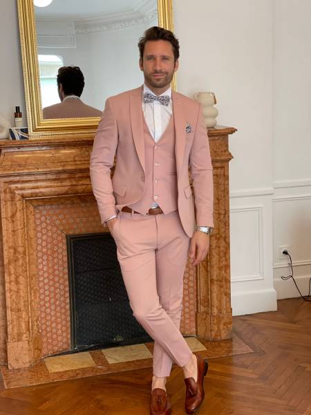 Costume 3 pièces bois de rose fil à fil 2 boutons