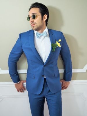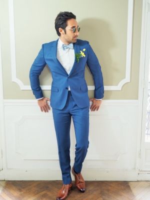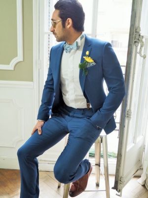 Costume bleu lavande tissus grainé ambiance champêtre
