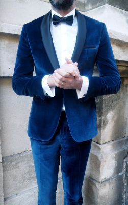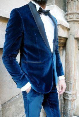 Greenwich Meridien Marseille costume de Mariage 2017-2018 vous propose son smocking bleu en velours Emmanuelle khanh