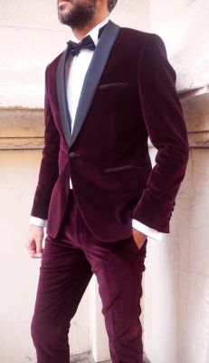 Viktör, boutique de costume de mariée et de ville à Marseille 8ème vous présente son costume de Mariage 2017-2018 smocking bordeaux en velours Emmanuelle khanh
