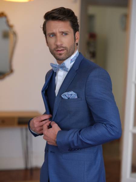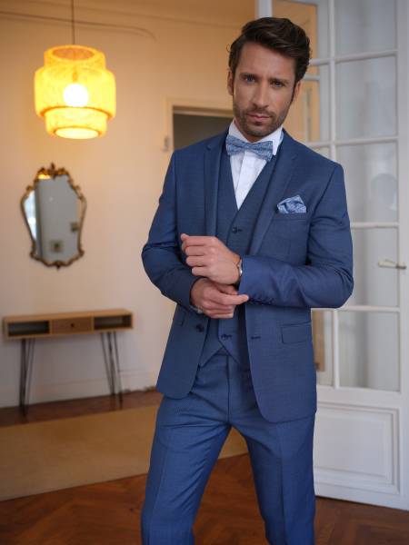 Costume 3 pièces bleu azur tissus grainé 2 boutons