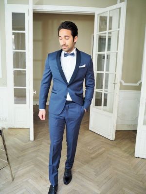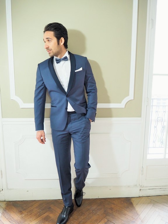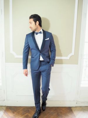 Smoking bleu gris col châle marine