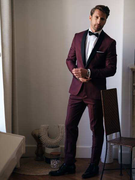 Viktör Concept Homme vous propose de nombreux costumes de Mariage 2024 vous propose son smoking bordeaux