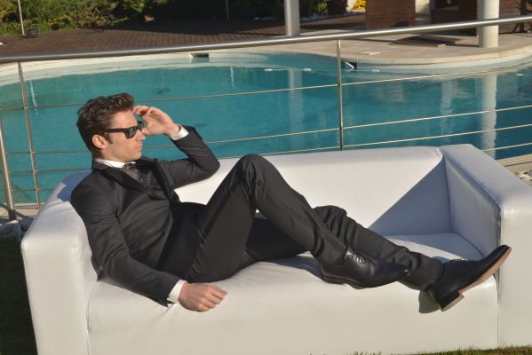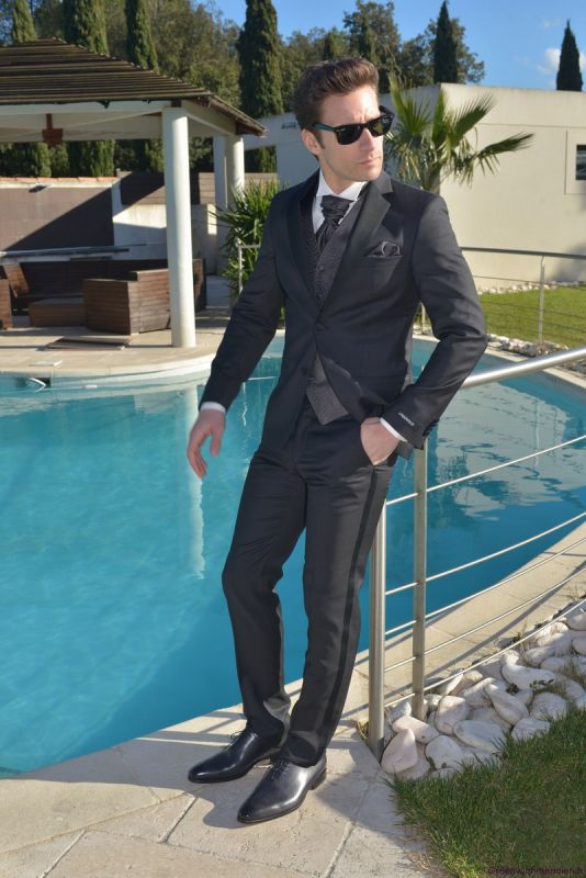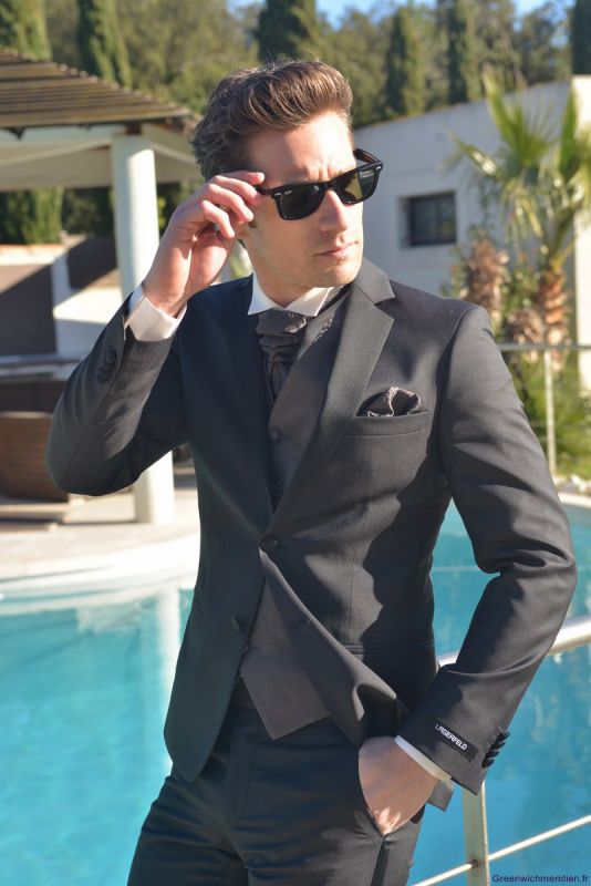 Greenwich Meridien Mariage Marseille, vous propose un Smoking Karl Lagerfeld cérémonie gris avec revers noir