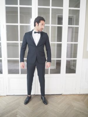 Smoking noir tissus piqué revers large tendance italienne